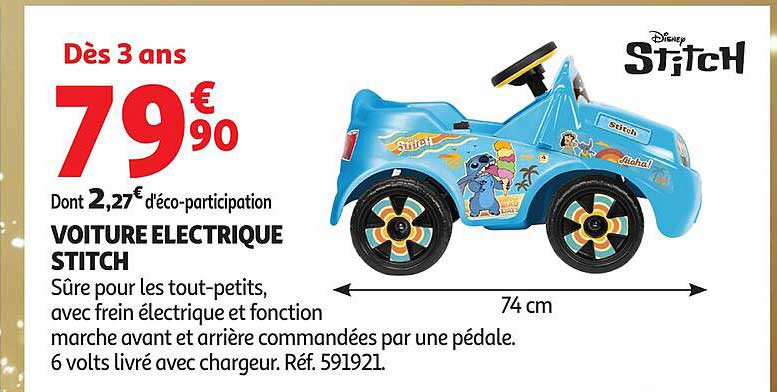 Découvrez dès maintenant la offre VOITURE ELECTRIQUE STITCH dans le catalogue de Auchan. Cette offre est valable du 21/10/2025 au 07/12/2025.
