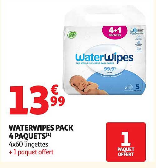 Dénichez l'offre sensationnelle sur les lingettes WaterWipes ! Pendant une durée limitée, du 4 au 23 novembre 2025, profitez de 4 paquets de 60 lingettes et recevez un paquet supplémentaire gratuitement. Ces lingettes sont parfaites pour les bébés et contribuent à garder leur peau propre et protégée.