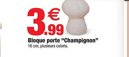 Découvrez l'offre de Bloque Porte "Champignon" chez Bazarland! Cette offre fantastique est maintenant disponible dans le nouveau catalogue de Bazarland. Profitez de cette occasion et économisez considérablement sur votre achat.