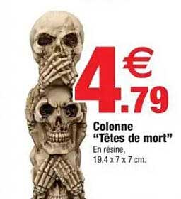 Découvrez dès maintenant la offre Colonne "Têtes de mort" dans le catalogue de Bazarland. Cette offre est valable du 15/11/2025 au 02/11/2026.