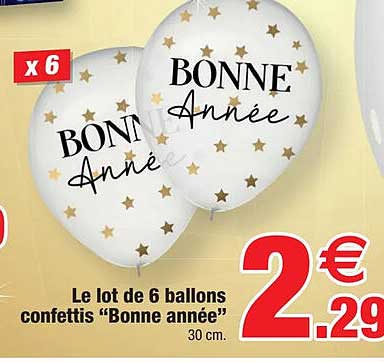 Offre de Le Lot De 6 Ballons Confettis "Bonne Année" chez Bazarland