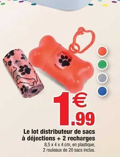 Vous êtes un amoureux des animaux ? Découvrez cette offre incroyable pour le lot distributeur de sacs à déjections ! Pratique et indispensable, ce produit vous permettra de respecter votre environnement tout en promenant votre compagnon à quatre pattes. Profitez de cette promotion en cours chez Bazarland, valable du 2025-10-01 au 2025-10-11. N'attendez pas, c'est l'occasion parfaite pour faire un geste pour la planète tout en gâtant votre fidèle ami.