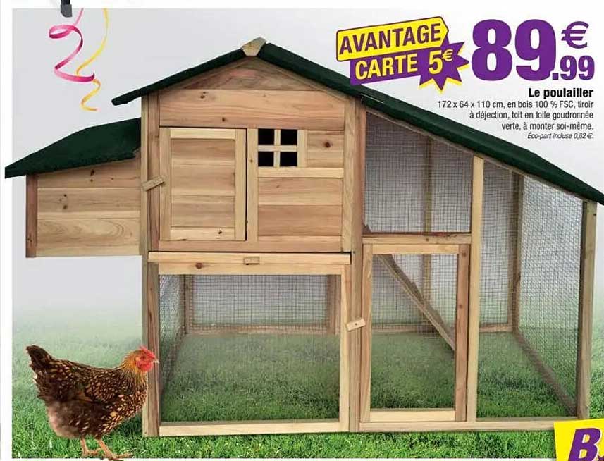 Actuellement, vous pouvez vous procurer ce poulailler au prix de 89,99 € grâce à l’avantage carte de 5 €. Ce prix attractif est une excellente opportunité par rapport à son prix habituel. Ce faible coût pour un abri de haute qualité est un investissement indispensable pour tout amateur de volaille.