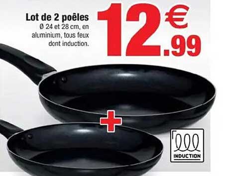 Découvrez dès maintenant la offre Lot de 2 poêles Ø 24 et 28 cm, en aluminium, tous feux dont induction. dans le catalogue de Bazarland. Cette offre est valable du 15/10/2025 au 25/10/2025.
