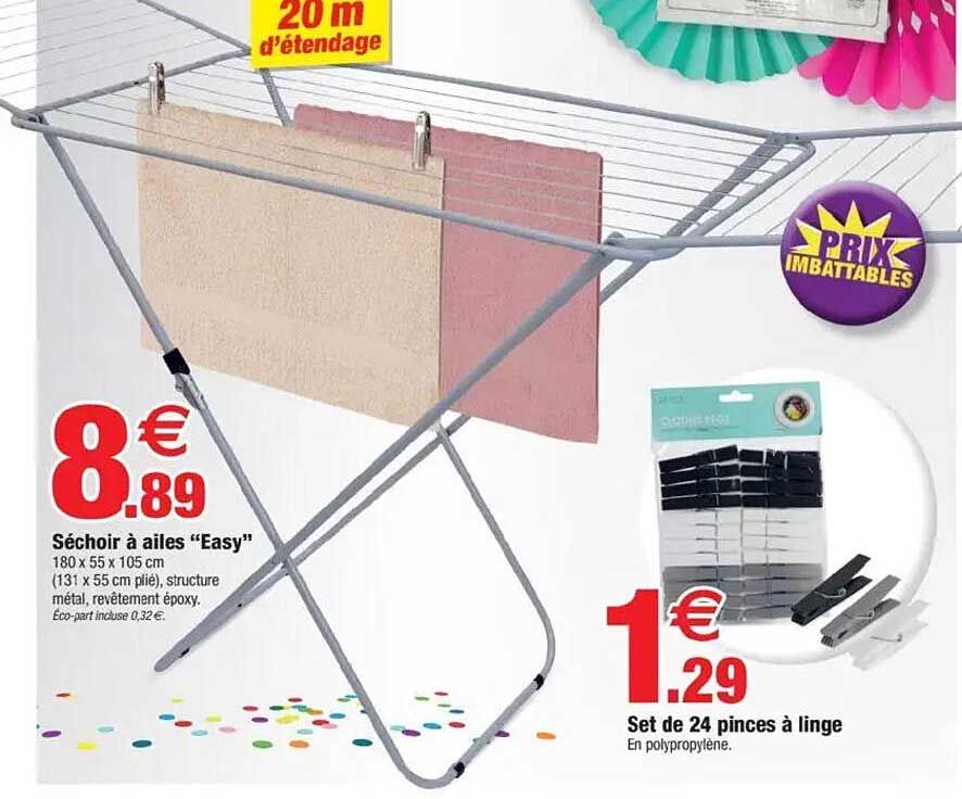 Découvrez dès maintenant la offre Séchoir à ailes "Easy" dans le catalogue de Bazarland. Cette offre est valable du 15/10/2025 au 25/10/2025.
