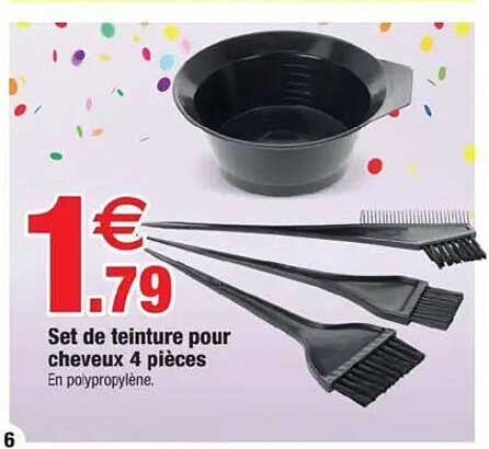 Vous cherchez une solution pratique et abordable pour colorer vos cheveux à la maison ? Ne cherchez plus ! Le set de teinture pour cheveux de Bazarland contient tout ce dont vous avez besoin pour un résultat professionnel. Avec un prix exceptionnel de seulement 1,79 €, cette offre est une occasion à ne pas manquer !