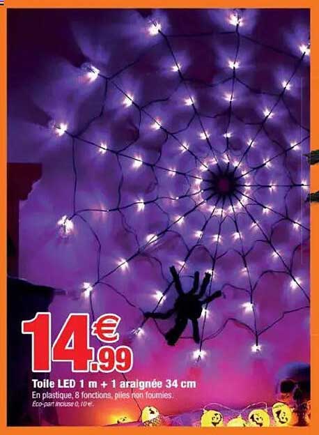 Découvrez dès maintenant la offre Toile LED 1 m + 1 araignée 34 cm dans le catalogue de Bazarland. Cette offre est valable du 15/11/2025 au 02/11/2026.