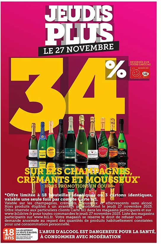 Découvrez dès maintenant la offre 34% SUR LES CHAMPAGNES, CRÉMANTS ET MOUSSEUX* dans le catalogue de Bi1. Cette offre est valable du 25/11/2025 au 07/12/2025.