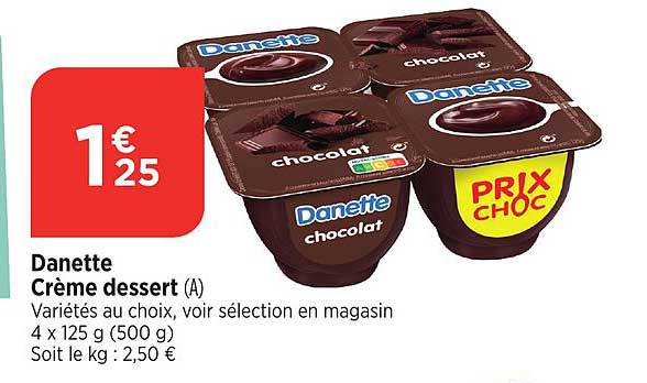 Vous voulez être informé immédiatement dès que le Danette Crème Dessert (A) est en promotion? Inscrivez-vous à notre alerte d'offres. Vous recevrez une notification dès que le produit sera disponible à un prix avantageux.