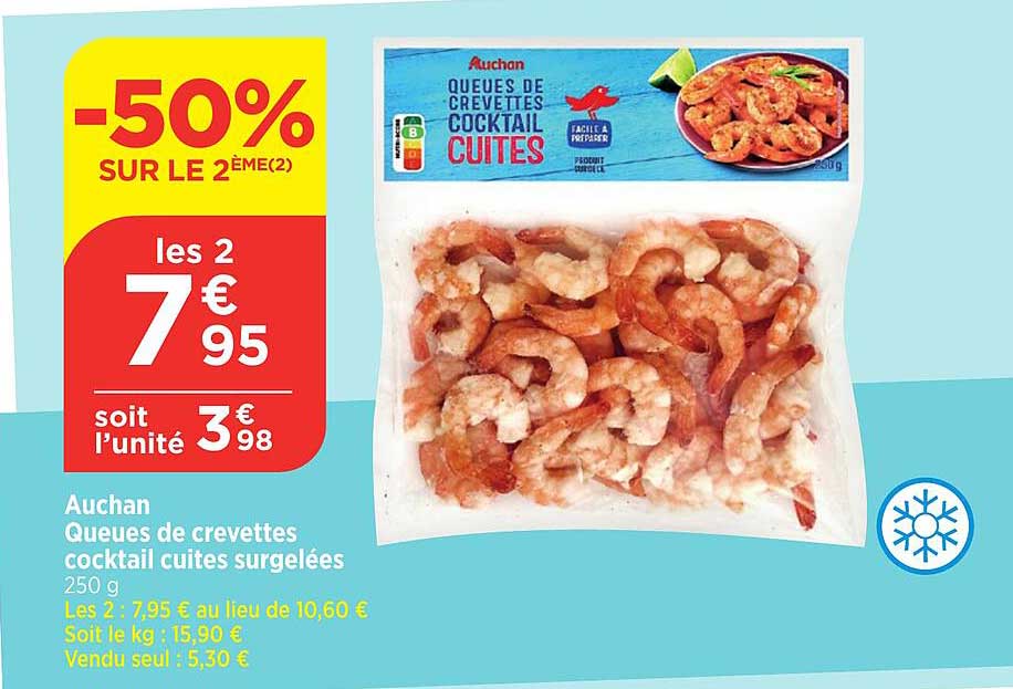 Vous voulez être informé immédiatement dès que le Queues De Crevettes Cocktail Cuites est en promotion? Inscrivez-vous à notre alerte d'offres. Vous recevrez une notification dès que le produit sera disponible à un prix avantageux.