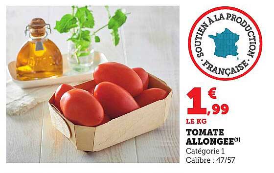 Découvrez notre offre exceptionnelle sur les tomates allongées, disponibles à un prix imbattable de seulement 1,99 € le kg ! Ces tomates, cultivées en France, sont idéales pour vos salades d'été, sauces et plats mijotés. Profitez de cette promotion valable du 22 au 27 juillet 2025 pour vous approvisionner en saveurs authentiques.