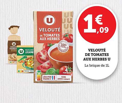 Découvrez dès maintenant la offre VELOUTÉ DE TOMATES AUX HERBES U dans le catalogue de Bi1. Cette offre est valable du 04/11/2025 au 16/11/2025.