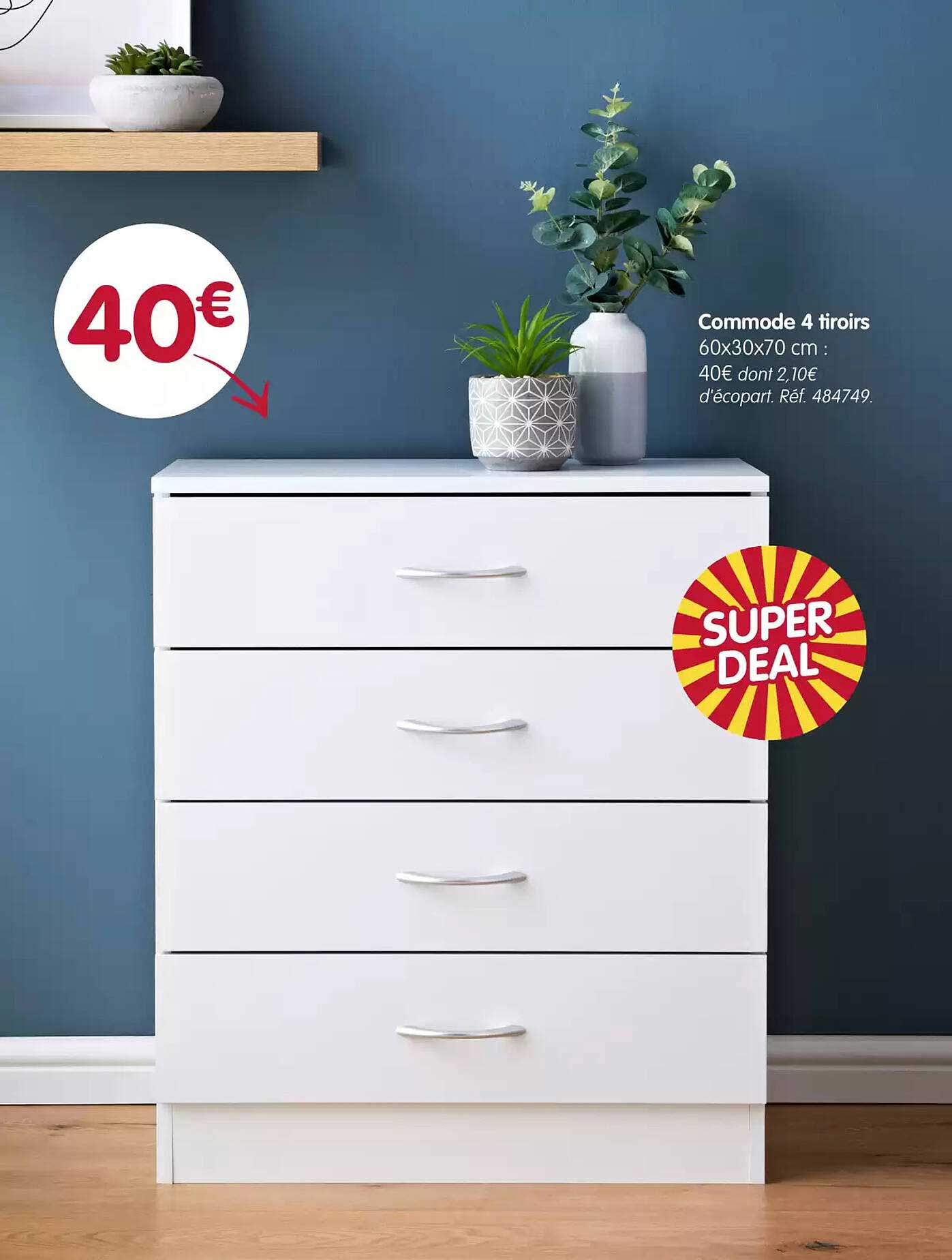 Découvrez l'offre de Commode 4 Tiroirs chez b&m! Cette offre fantastique est maintenant disponible dans le nouveau catalogue de b&m. Profitez de cette occasion et économisez considérablement sur votre achat.