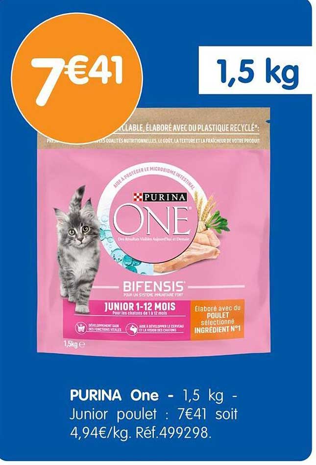 Découvrez l'offre exceptionnelle sur la nourriture pour chat PURINA One ! Avec un format de 1,5 kg, cette formule junior est spécialement conçue pour les chatons âgés de 1 à 12 mois. Elle combine savoureuse qualité et bienfaits nutritionnels, idéal pour soutenir la croissance et le développement optimal de votre petit compagnon.