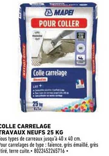 Découvrez notre offre exceptionnelle sur la colle carrelage Mapei, parfaite pour tous vos projets de rénovation et de construction. Cette colle spéciale est conçue pour garantir une adhérence optimale, ce qui en fait un choix incontournable pour tous ceux qui souhaitent réaliser des travaux de carrelage. Que vous soyez un bricoleur amateur ou un professionnel, c'est une opportunité à ne pas manquer !