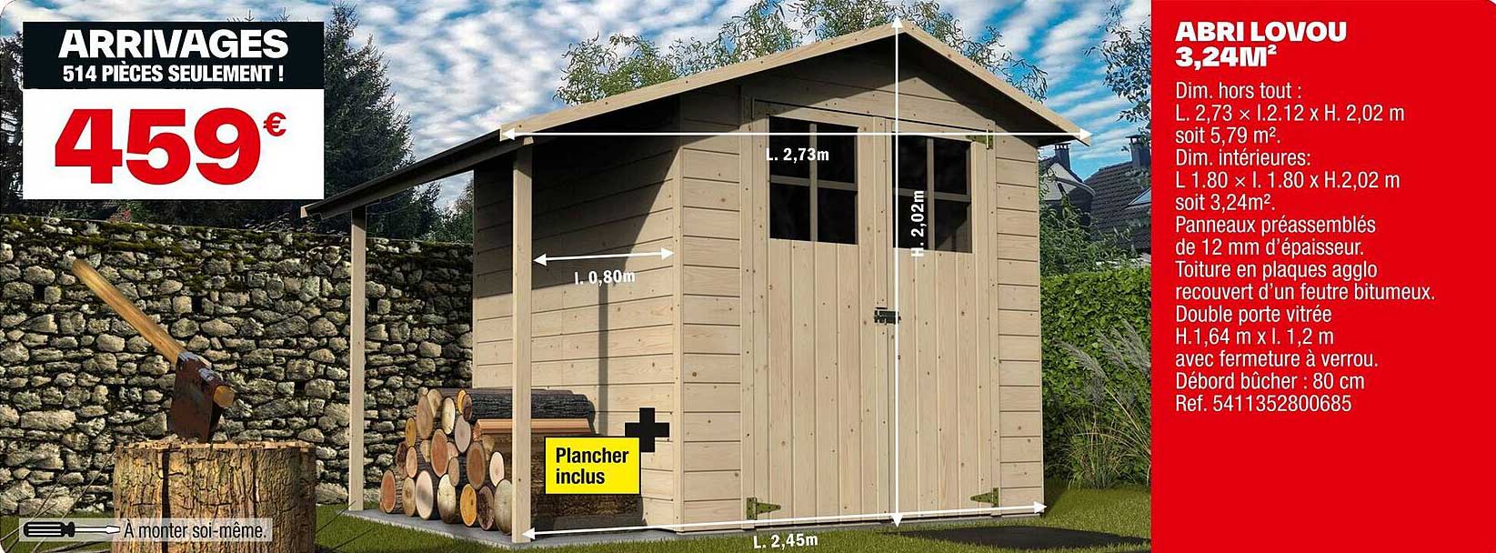 Découvrez dès maintenant la offre ABRI LOVOU 3,24M² dans le catalogue de Brico Dépôt. Cette offre est valable du 10/10/2025 au 23/10/2025.