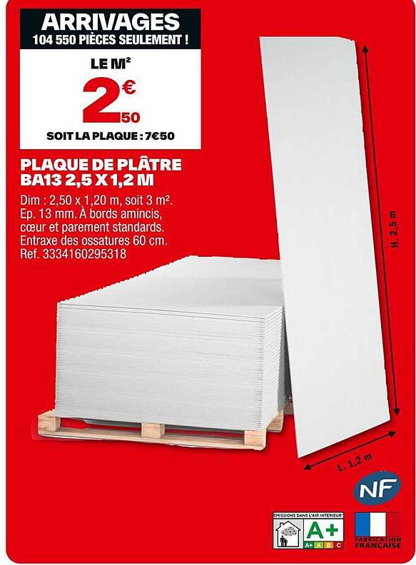 Vous cherchez des plaques de plâtre pour vos projets de rénovation ou de construction ? Ne cherchez plus ! Brico Dépôt vous propose une offre exceptionnelle sur les plaques de plâtre BA13, idéales pour vos besoins d'aménagement intérieur.