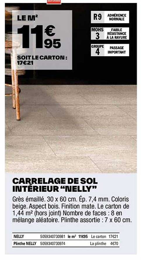 Découvrez la superbe offre de Carrelage De Sol Intérieur “Nelly” dans le nouveau catalogue de Brico Dépôt. En plus de cette offre, vous trouverez de nombreuses autres réductions attrayantes. Vous pouvez facilement commander le Carrelage De Sol Intérieur “Nelly” en ligne via le site web de Brico Dépôt ou l'acheter dans un magasin près de chez vous.