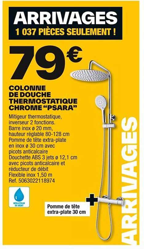 Découvrez l'offre de Colonne De Douche Thermostatique Chrome “Psara” chez Brico Dépôt! Cette offre fantastique est maintenant disponible dans le nouveau catalogue de Brico Dépôt. Profitez de cette occasion et économisez considérablement sur votre achat.