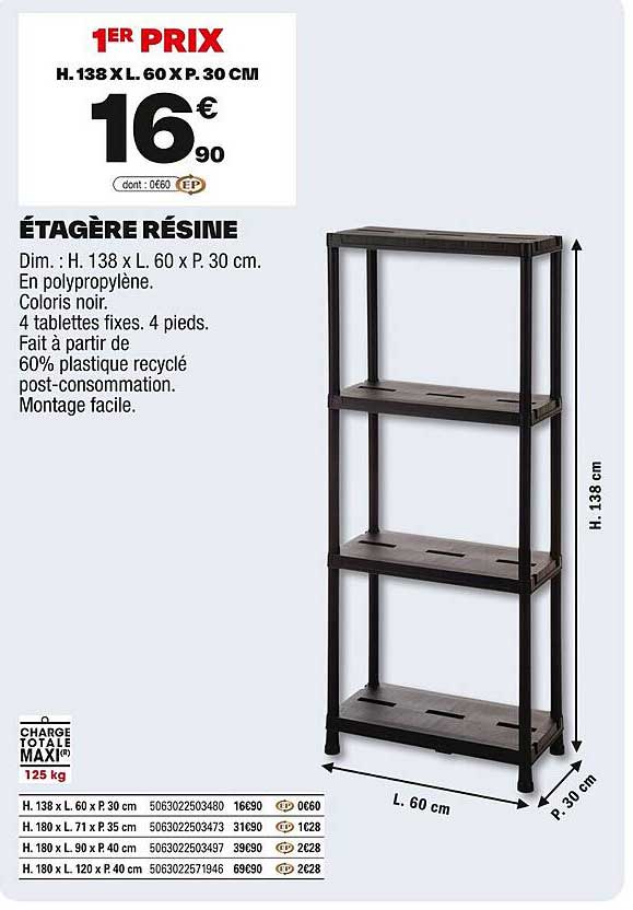 Découvrez dès maintenant la offre ÉTAGÈRE RÉSINE dans le catalogue de Brico Dépôt. Cette offre est valable du 15/10/2025 au 22/10/2025.