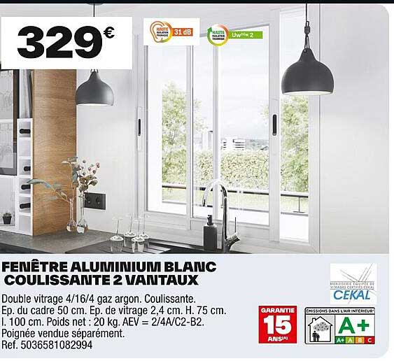 Découvrez une occasion unique de moderniser votre habitat avec cette magnifique fenêtre en aluminium blanc coulissante à deux vantaux. Idéale pour apporter lumière et espace à votre intérieur, cette fenêtre est l'élément parfait pour transformer votre maison. Pourquoi hésiter ? Profitez de cette offre valable du 2025-10-15 au 2025-10-22 sur cette page.