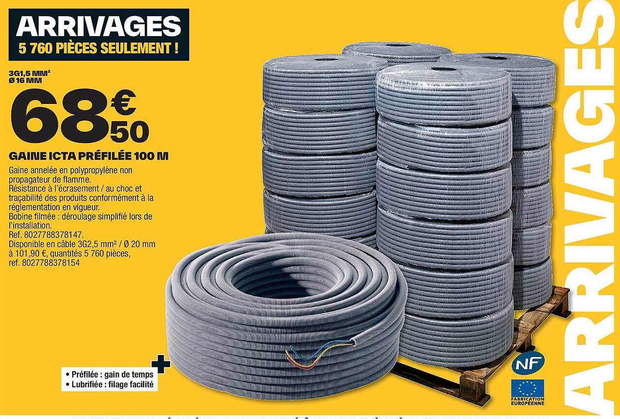 Découvrez dès maintenant la offre GAINE ICTA PRÉFILÉE 100 M dans le catalogue de Brico Dépôt. Cette offre est valable du 31/01/2025 au 20/02/2025.