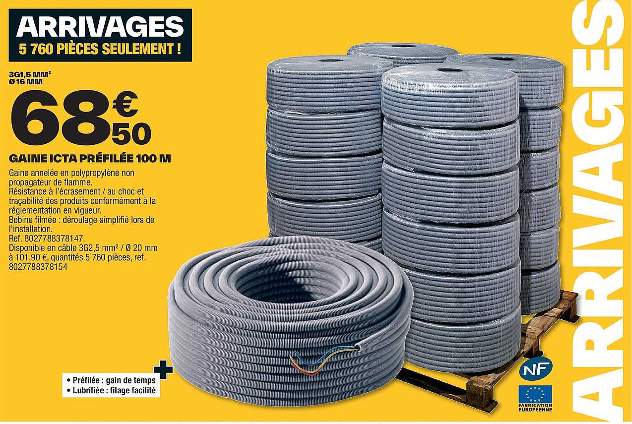 Découvrez l'offre de Gaine Icta Préfilée 100 M chez Brico Dépôt! Cette offre fantastique est maintenant disponible dans le nouveau catalogue de Brico Dépôt. Profitez de cette occasion et économisez considérablement sur votre achat.