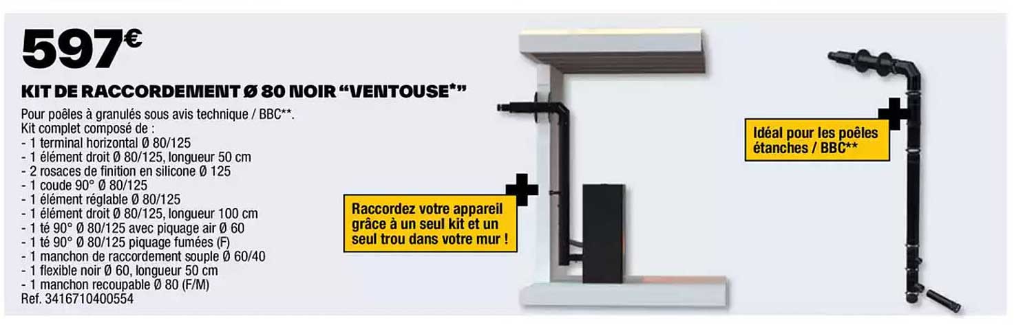 Découvrez l'offre de Kit De Raccordment Ø 80 Noir "Ventouse*" chez Brico Dépôt! Cette offre fantastique est maintenant disponible dans le nouveau catalogue de Brico Dépôt. Profitez de cette occasion et économisez considérablement sur votre achat.