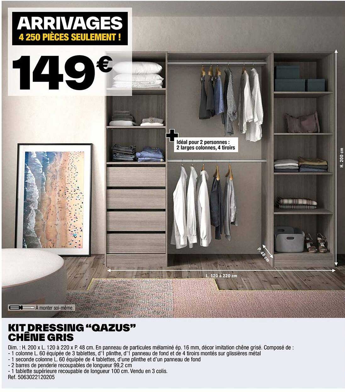 Découvrez l'offre de Kit Dressing “Qazus” Chêne Gris chez Brico Dépôt! Cette offre fantastique est maintenant disponible dans le nouveau catalogue de Brico Dépôt. Profitez de cette occasion et économisez considérablement sur votre achat.