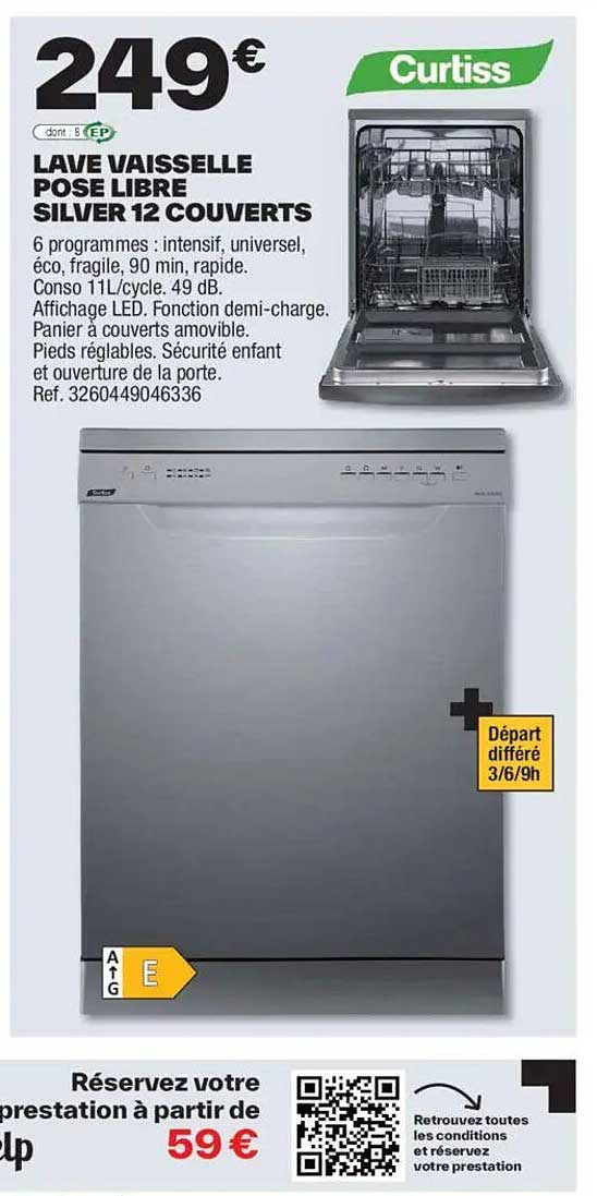 Offre de Lave Vaisselle Pose Libre Silver 12 Couverts chez Brico Dépôt