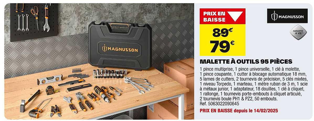 Découvrez la mallette à outils 95 pièces de la marque Magnusson, un indispensable pour tous les bricoleurs, qu'ils soient novices ou expérimentés. Avec cette offre en baisse, vous ne pourrez pas résister à la qualité de cette mallette qui rassemble tout le nécessaire pour mener à bien vos projets de bricolage. Elle est disponible à un prix réduit, permettant de réaliser des économies tout en s'équipant efficacement.