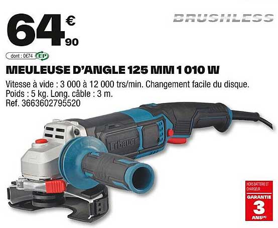 Proposée à 64,90 €, cette meuleuse d’angle offre un excellent rapport qualité-prix. En comparaison avec d'autres marques, vous faites ici une économie significative tout en bénéficiant d’un outil de haute performance.