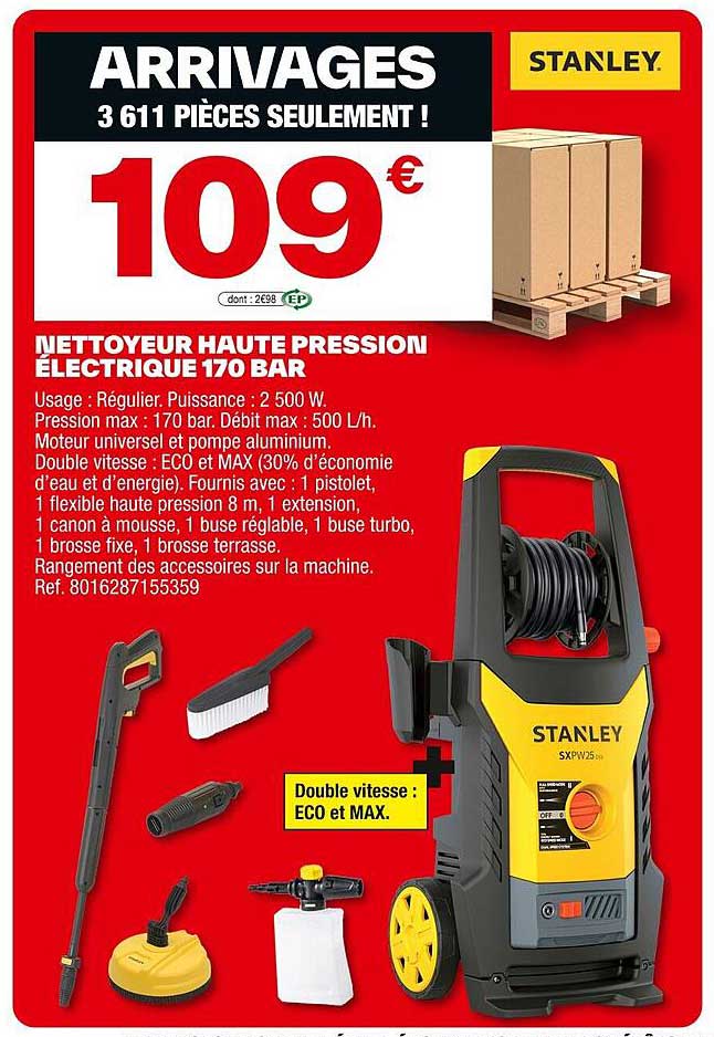 Découvrez l'offre de Nettoyeur Haute Pression Électrique 170 Bar chez Brico Dépôt! Cette offre fantastique est maintenant disponible dans le nouveau catalogue de Brico Dépôt. Profitez de cette occasion et économisez considérablement sur votre achat.
