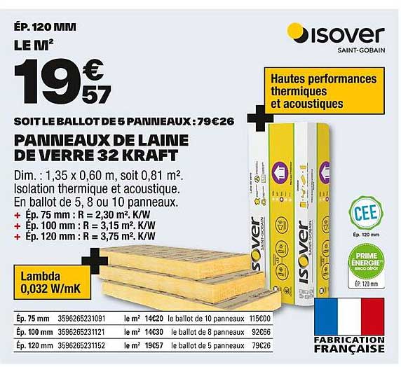 Découvrez l'offre de Panneaux De Laine De Verre 32 Kraft chez Brico Dépôt! Cette offre fantastique est maintenant disponible dans le nouveau catalogue de Brico Dépôt. Profitez de cette occasion et économisez considérablement sur votre achat.