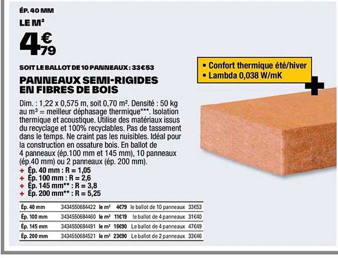 Offre de Panneaux Semi-Rigides En Fibres De Bois chez Brico Dépôt