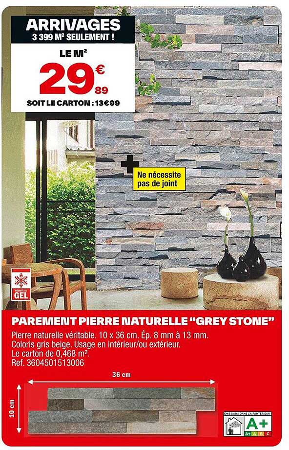 Découvrez l'offre de Parement Pierre Naturelle "Grey Stone" chez Brico Dépôt! Cette offre fantastique est maintenant disponible dans le nouveau catalogue de Brico Dépôt. Profitez de cette occasion et économisez considérablement sur votre achat.