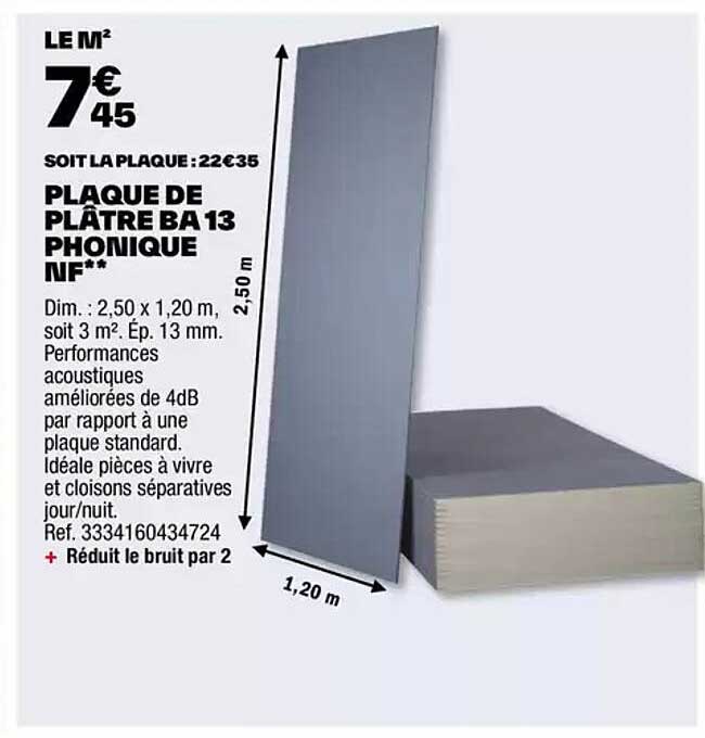 Offre de Plaque De Plâtre Ba 13 Phonique Nf** chez Brico Dépôt