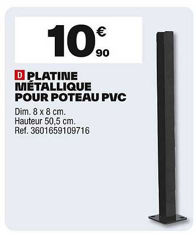 Découvrez l'offre de Platine Métallique Pour Poteau Pvc chez Brico Dépôt! Cette offre fantastique est maintenant disponible dans le nouveau catalogue de Brico Dépôt. Profitez de cette occasion et économisez considérablement sur votre achat.