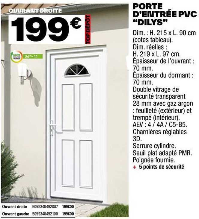 Découvrez l'offre de Porte D'entrée Pvc "Dilys" chez Brico Dépôt! Cette offre fantastique est maintenant disponible dans le nouveau catalogue de Brico Dépôt. Profitez de cette occasion et économisez considérablement sur votre achat.
