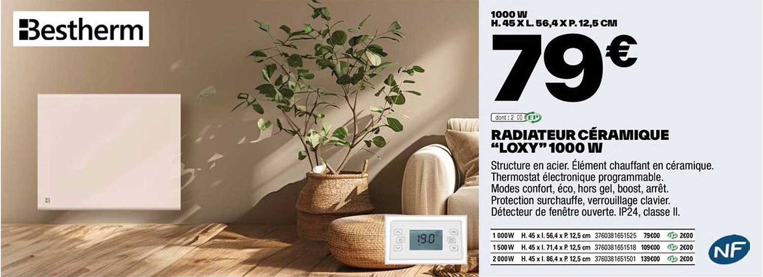 Découvrez dès maintenant la offre RADIATEUR CÉRAMIQUE "LOXY" 1000 W dans le catalogue de Brico Dépôt. Cette offre est valable du 02/10/2024 au 09/10/2024.