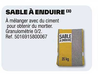 Ce sable à enduire possède une granulométrie de 0/2, ce qui le rend adapté à différents types d'applications. Sa composition permet d'obtenir un mortier adhérent, fiable et facile à travailler. De plus, chaque sac de 35 kg a été choisi pour son praticité, facilitant le transport et la manipulation sur vos chantiers.
