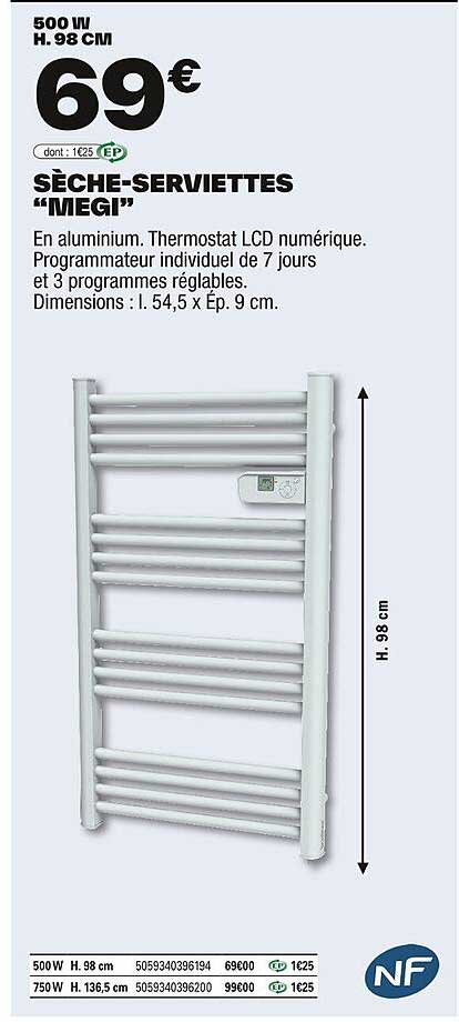 Découvrez l'offre de Sèche-Serviettes "Megi" chez Brico Dépôt! Cette offre fantastique est maintenant disponible dans le nouveau catalogue de Brico Dépôt. Profitez de cette occasion et économisez considérablement sur votre achat.