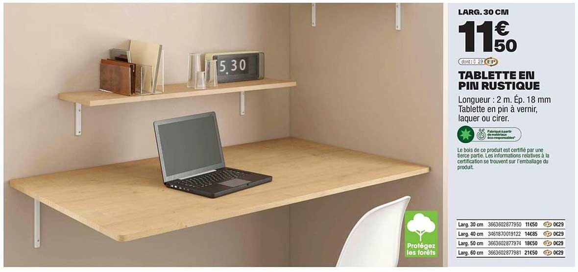 Découvrez l'offre de Tablette En Pin Rustique chez Brico Dépôt! Cette offre fantastique est maintenant disponible dans le nouveau catalogue de Brico Dépôt. Profitez de cette occasion et économisez considérablement sur votre achat.