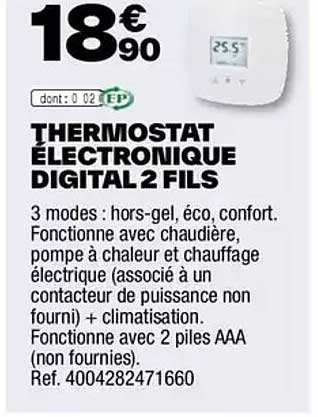 Offre de Thermostat Électronique Digital 2 Fils chez Brico Dépôt