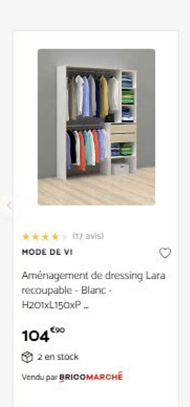 Découvrez dès maintenant la offre Aménagement de dressing Lara recoupable - Blanc - H201xl150xP dans le catalogue de Bricomarché. Cette offre est valable du 10/02/2025 au 14/02/2025.