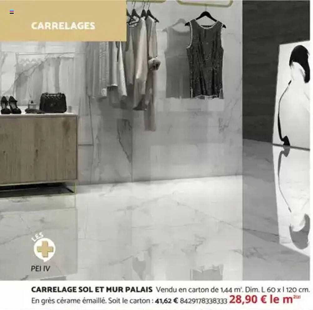 Découvrez la superbe offre de Carrelage Sol Et Mur Palais dans le nouveau catalogue de Bricomarché. En plus de cette offre, vous trouverez de nombreuses autres réductions attrayantes. Vous pouvez facilement commander le Carrelage Sol Et Mur Palais en ligne via le site web de Bricomarché ou l'acheter dans un magasin près de chez vous.