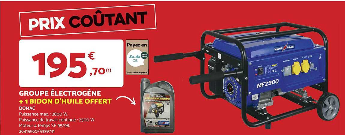 Offre de Groupe Électrogène + 1 Bidon D'huile Offert chez Bricomarché