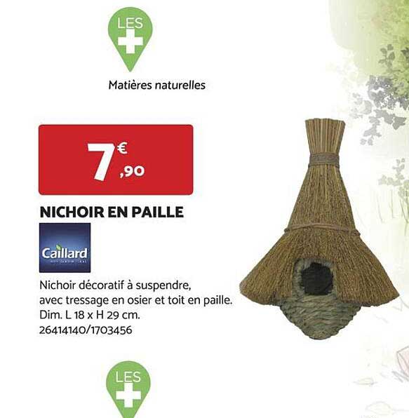 Découvrez l'offre de Nichoir En Paille chez Bricomarché! Cette offre fantastique est maintenant disponible dans le nouveau catalogue de Bricomarché. Profitez de cette occasion et économisez considérablement sur votre achat.