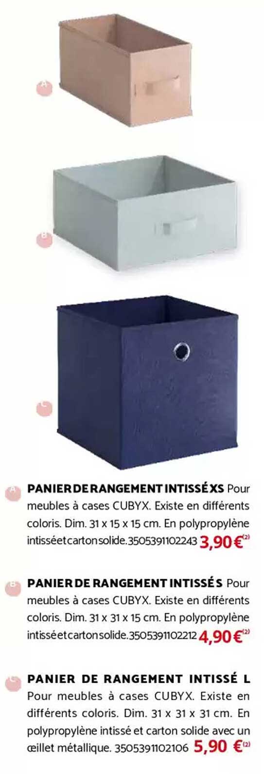 Découvrez l'offre de Panier De Rangement Intissé Xs Panier De Rangement Intissé S Panier De Rangement Intissé L chez Bricomarché! Cette offre fantastique est maintenant disponible dans le nouveau catalogue de Bricomarché. Profitez de cette occasion et économisez considérablement sur votre achat.