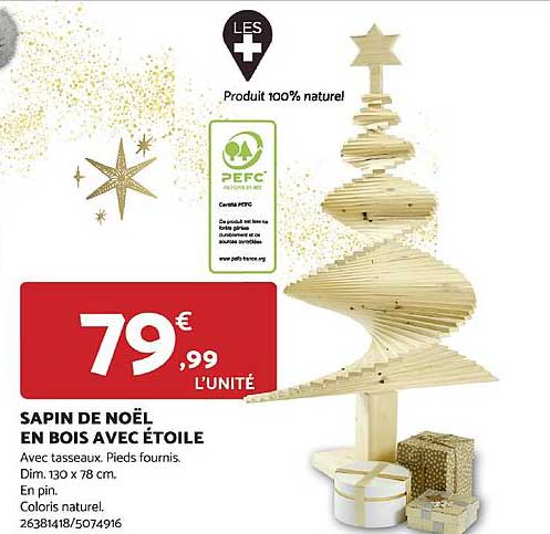 Offre de Sapin De Noël En Bois Avec Étoile chez Bricomarché